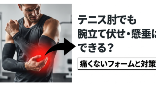 テニス肘 テニス肘でも腕立て伏せや懸垂はできる?痛くないフォームと対策 テニス肘での腕立て伏せや懸垂の痛みに悩み、継続すべきか迷っていませんか?本記事では、テニス肘でも腕立て伏せや懸垂を安全に行うためのフォーム改善やギア活用術を徹底解説。痛くない代替種目やリハビリ、サポーター選びまで網羅し、怪我を乗り越えて強化するための完全ガイドをお届けします。 2026.02.17 テニス肘