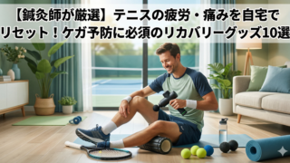 テニスの翌日、肩や肘、腰の痛み・疲労に悩んでいませんか?現役の鍼灸師・柔道整復師が、自宅で簡単にできる最強のリカバリーグッズ10選を厳選紹介!マッサージガンや筋膜リリースアイテムなど、ケガ予防とパフォーマンス向上に必須のセルフケア術をプロの視点から徹底解説します。
