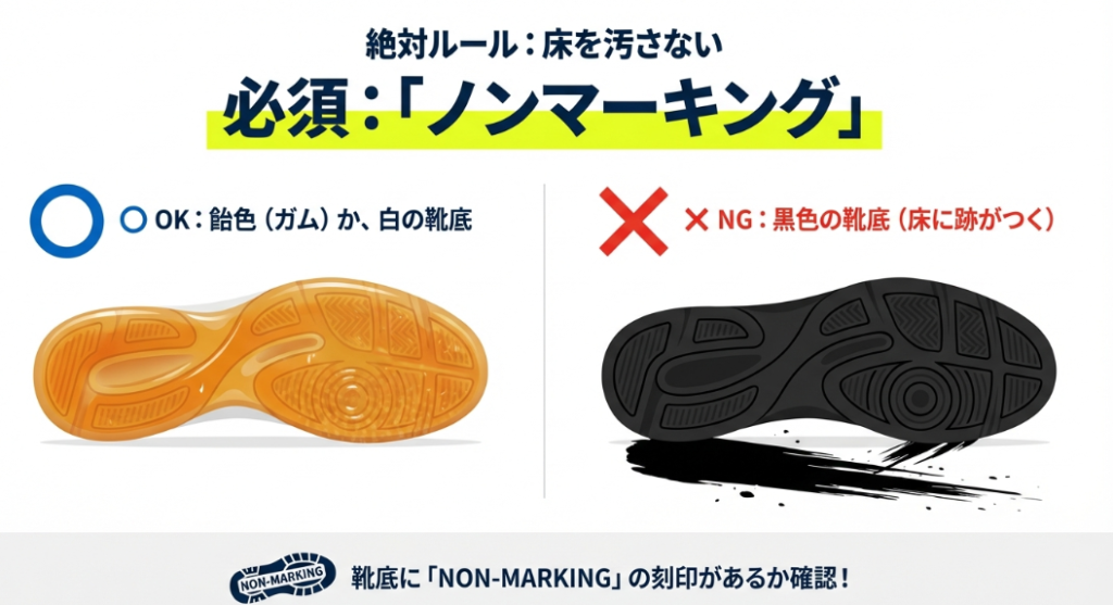 - 体育館のルールを守るノンマーキングソールの見分け方