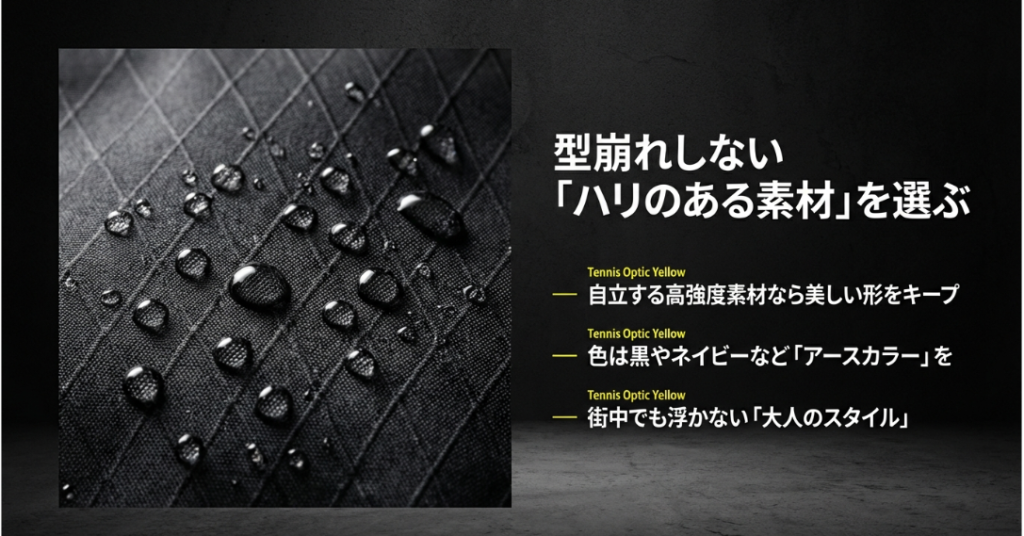 生地自体にしっかりとしたコシがある高強度の素材を選べば、中に荷物があまり入っていない状態でもバッグが自立しやすく、美しいシルエットを保ってくれます。ヨットの帆に使われるようなセイルクロスや、ミリタリーギアに採用されるようなタフな素材は、見た目の高級感も格別です。