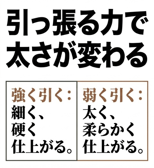 1. 常に一定の力(テンション)で引っ張り続けること