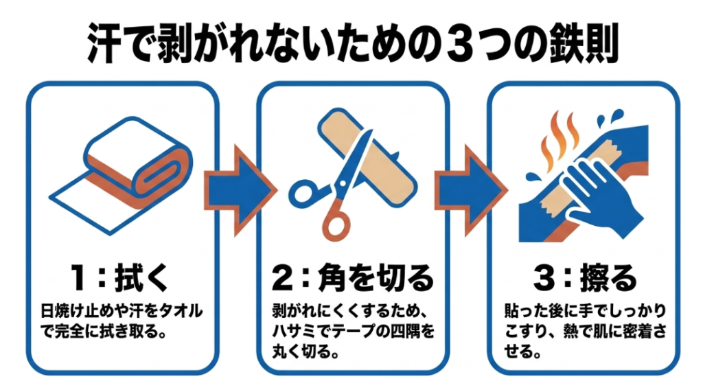 汗でテーピングが剥がれないためのコツ