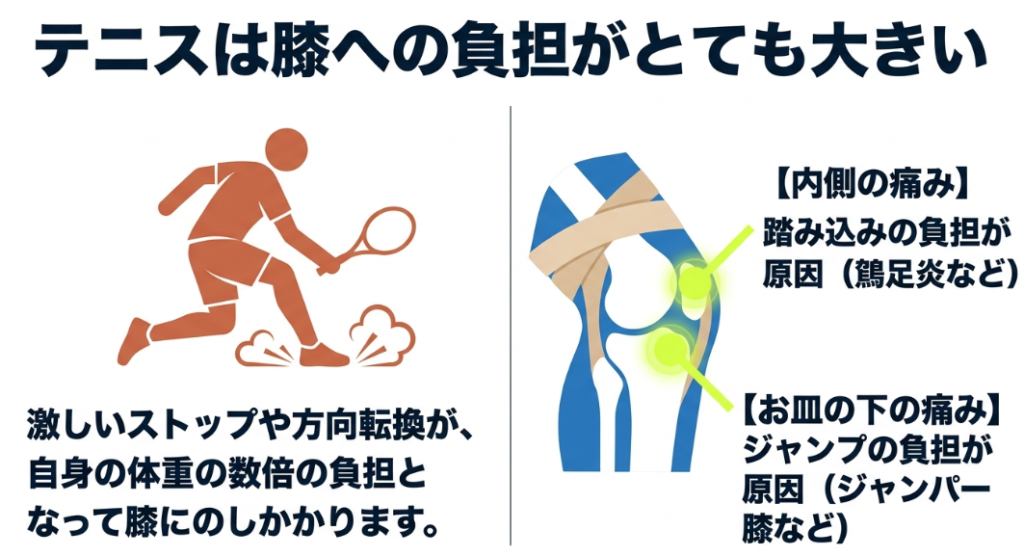 1. テニス特有の激しいフットワークと膝への負担