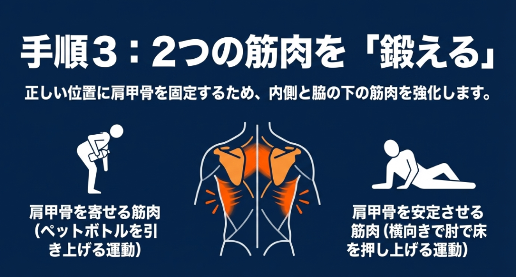 1. 菱形筋のトレーニング(ペットボトルロウイング)